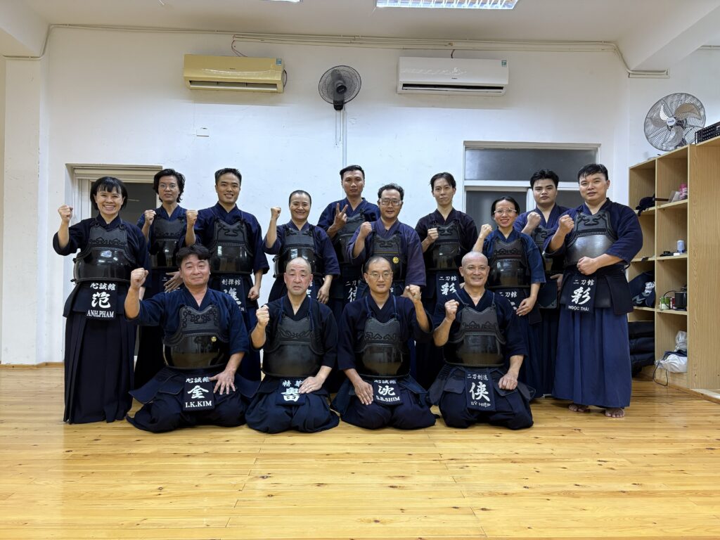 後記 剣道旅前半は、カンボジアのプノンペン剣道クラブ、ホーチミンでは心誠館で3回、二刀館での稽古でした。剣道旅はベトナムの首都ハノイに舞台が移ります。写真:上は心誠館での最後の稽古。前列左から酒も剣道も強い金先生、私、沈(シム)先生、侠(ヒッピ)先生。下は二刀館の朝稽古です。 さぁ!稽古しよう!