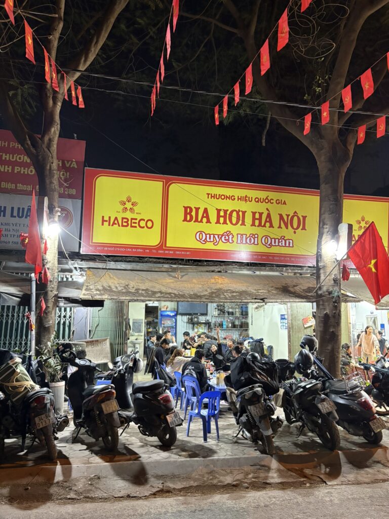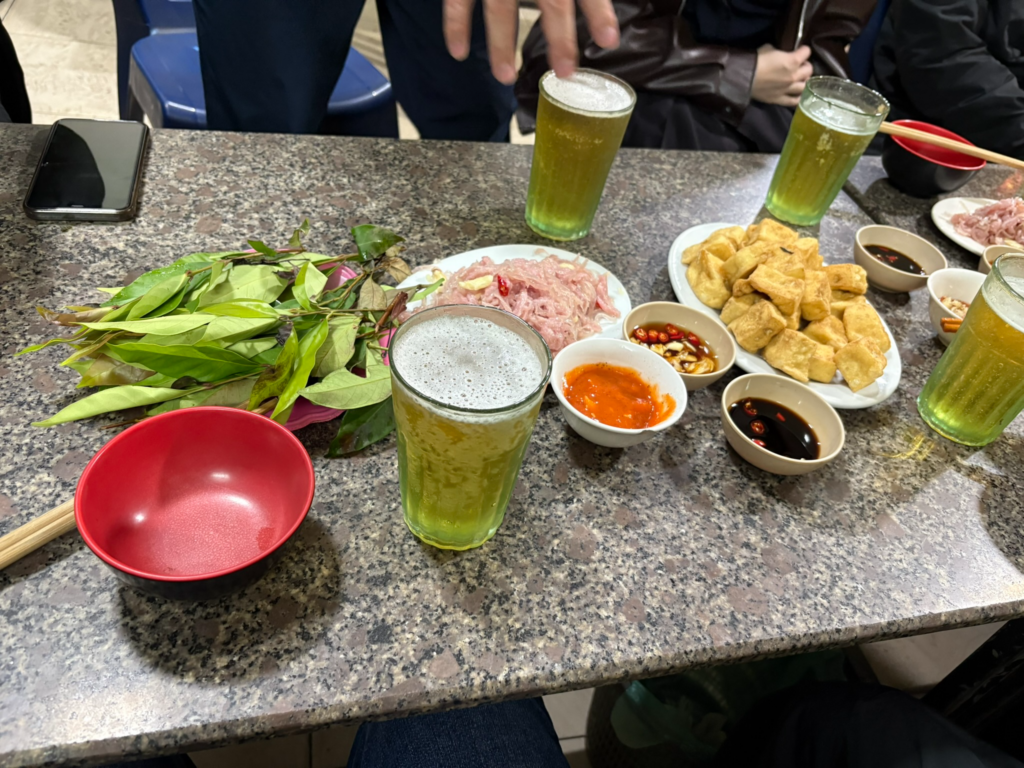後記 (一人で入る勇気は無いような)居酒屋でみんなでビールを飲みました。ローカルフードもとても美味しかったです。私個人の印象ですがベトナム人は童顔の方が多いです。私が男性剣士に「君は高校生やろ?ベトナムは高校生でもビールを飲んでいいのか?」と聞くと「私はもう25歳です。海の研究者です」「ボクは22歳,大学で医学を勉強しています」。他の女性剣士に「あなたは中学生ですか?」と聞くと「私は22歳です」と切り返され,その度に大きな笑いが起きました。稽古の最終日になんて楽しい夜なのでしょう❣私は稽古疲れと飲みすぎでフラフラでしたので先に帰らせていただきました(稽古終了が22時30分,そこから移動しての飲み会で,既に日付が変わってました)。ホテルに戻り私は大変な事に気がつきました。なんと飲み代を払わずに出てきてしまいました。決して裕福では無いベトナムの若者達相手に最低の行為です。林(イム)先生には「支払いは必要ありません」と言って頂きましたが,それでもお金は置いてくるのが大人っちゅーもんです。ベトナムの若者にお酒をおごらせた事,それを反省しながら日々生活しています。あぁ,もうすぐにでもベトナムに行って飲み会のやり直し,じゃなかった稽古をしたい❣さぁ!稽古しよう!