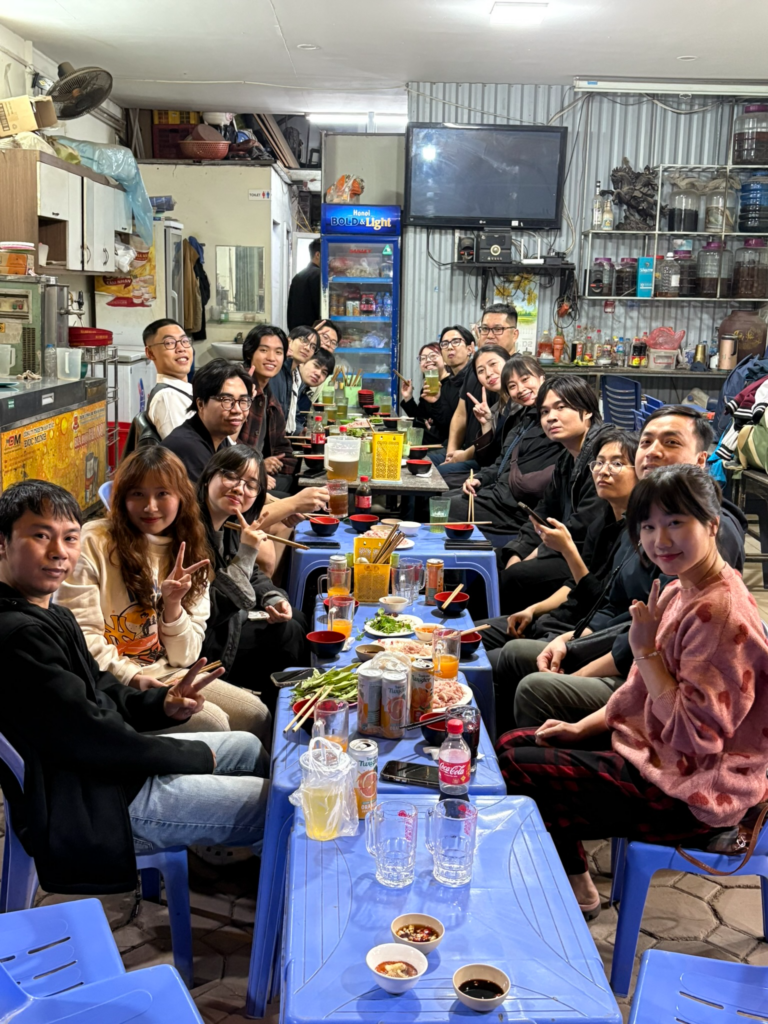 1月30日(金曜日)は雄英剣道に戻ってこの旅の最後の稽古でした。この日は偶然ですが林(イム)先生が巡回指導に来られてました。怖い先生が来ると稽古の雰囲気が変わるのは日本と同じです。ハッピー剣道の雄英剣道の若者もこの日は緊張して稽古をしてました。こうしてカンボジア,ベトナムの剣道旅は,5つの道場(プノンペン剣道クラブ,心誠館3回,二刀館,雄英剣道2回,タンロン道場)で計8回の稽古をさせていただきました。フン先生は日本語をほとんど話されませんが,稽古終わりにフン先生から「今夜飲みましょう」とお誘いをいただきました。林(イム)先生からは「私も誘われましたので一緒に行きましょう。ベトナムは旧正月の前で,今夜は雄英剣道の忘年会なんです」と言っていただきました。